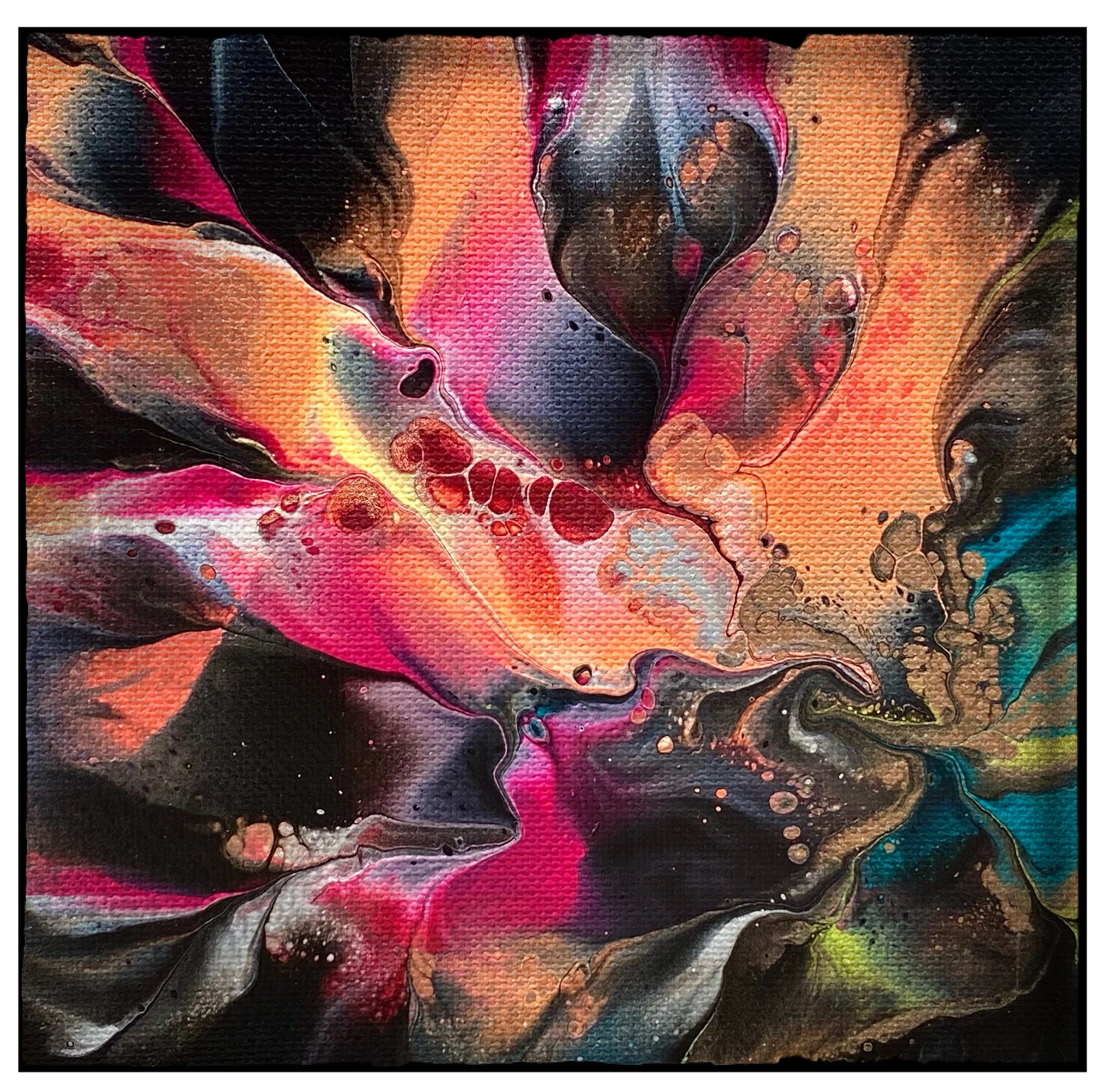 It begins with acrylic pour painting on canvas